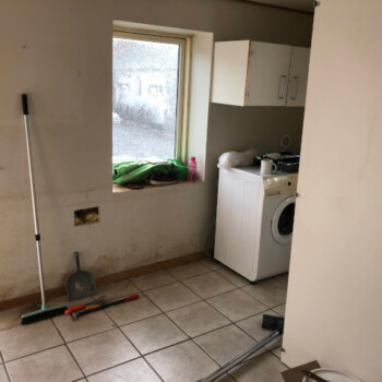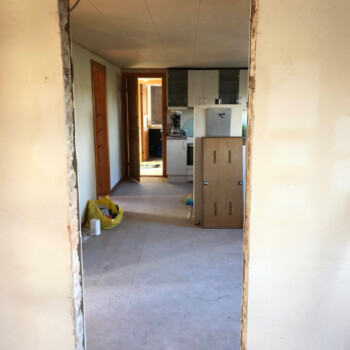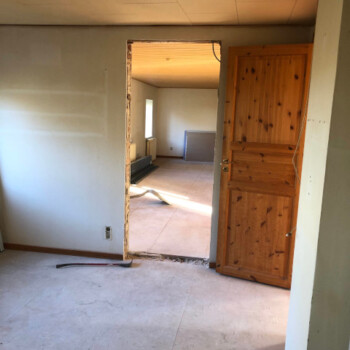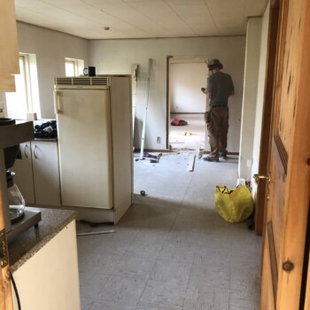 Da stuehuset på nuværende tidspunkt kun har et værelse, er vi nødt til at opdele spisestuen i 2 værelser og genetablere en åbning mellem alrum og stue, så de to værelser ikke bliver gennemgangs værelser. Så vi bryder ned og bygger op. Der er ikke noget afløb i bryggerset og lige nu er der lavet en uholdbar storm-p løsning ud gennem vinduet for at kunne vaske tøj. Men i og med vi skal have færdiggjort det påbegyndte nye badeværelse bliver det gamle badeværelse overflødigt. Derfor vil vi bryde badekarret ned og lave det gamle badeværelse om til vaskerum.